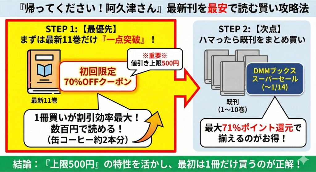 さらに、現在は「DMMブックススーパーセール(2025-2026)」も開催中(2026年1月14日まで)。 クーポンで最新刊を安くゲットして、 「やっぱり面白い! 昔のエピソードも読みたい!」 と思ったら、セールのポイント還元(50%〜最大71%) を使って既刊を揃えるのも賢い作戦です。