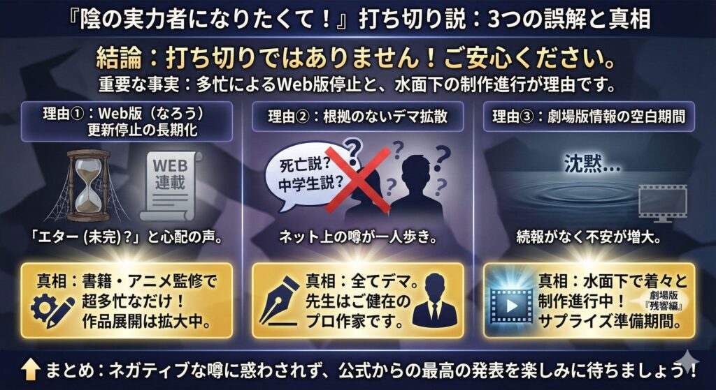 『陰の実力者になりたくて!』打ち切り説 3つの真相